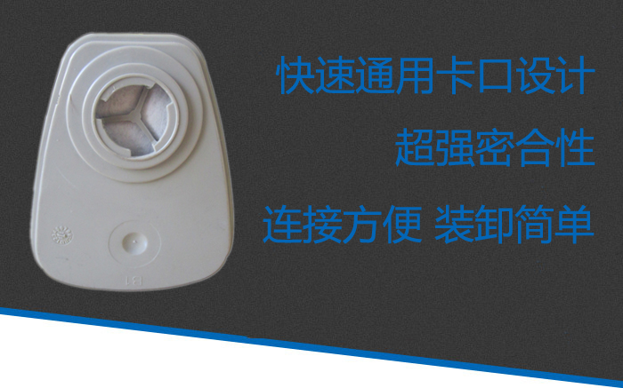 二 金盾E型7號(hào)濾毒盒采用快速通用卡口設(shè)計(jì),連接方便,裝卸簡(jiǎn)單;90度旋轉(zhuǎn)卡口設(shè)計(jì),密合性超強(qiáng)。
