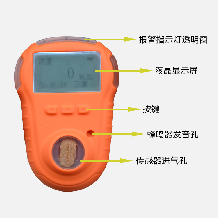 | LCD連續(xù)實(shí)時(shí)的顯示氣體濃度-需要背景光時(shí)將會(huì)自動(dòng)打開(kāi) |